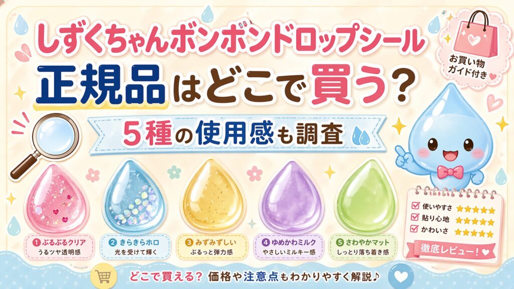 しずくちゃんボンボンドロップシールの正規品はどこで買う?5種の使用感も調査