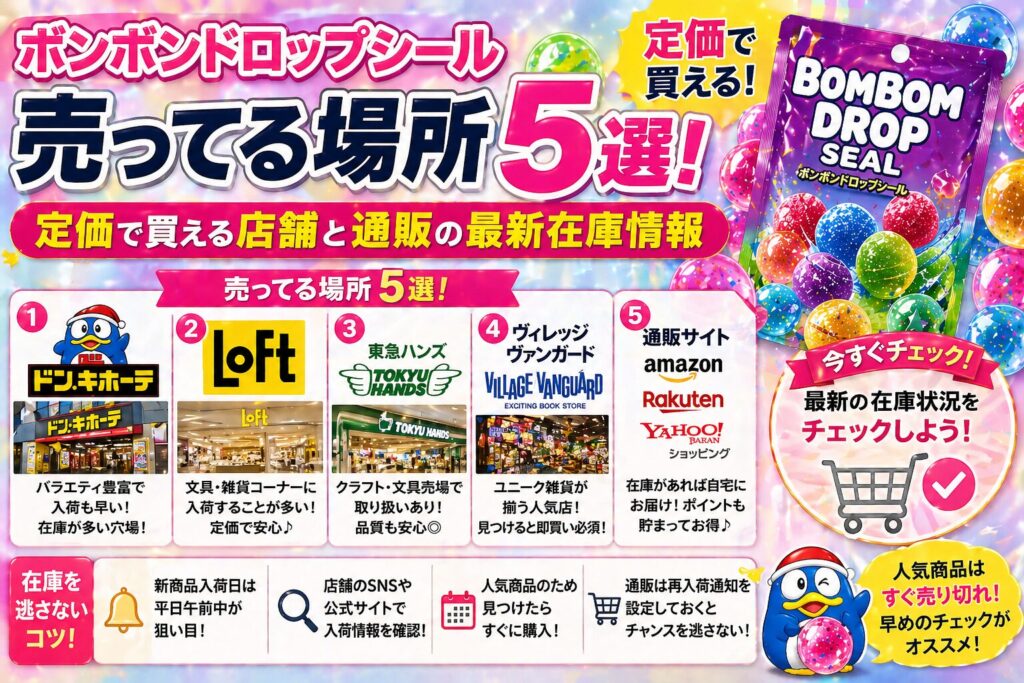 サンリオのボンボンドロップシールを定価で手に入れたいなら、まずは直営のサンリオショップや大手量販店をチェックするのが正解です。 「どこに行っても売り切れ…」「新作はいつ出るの?」と、SNSで話題のシールを探し回って疲れていませんか? 大丈夫、...