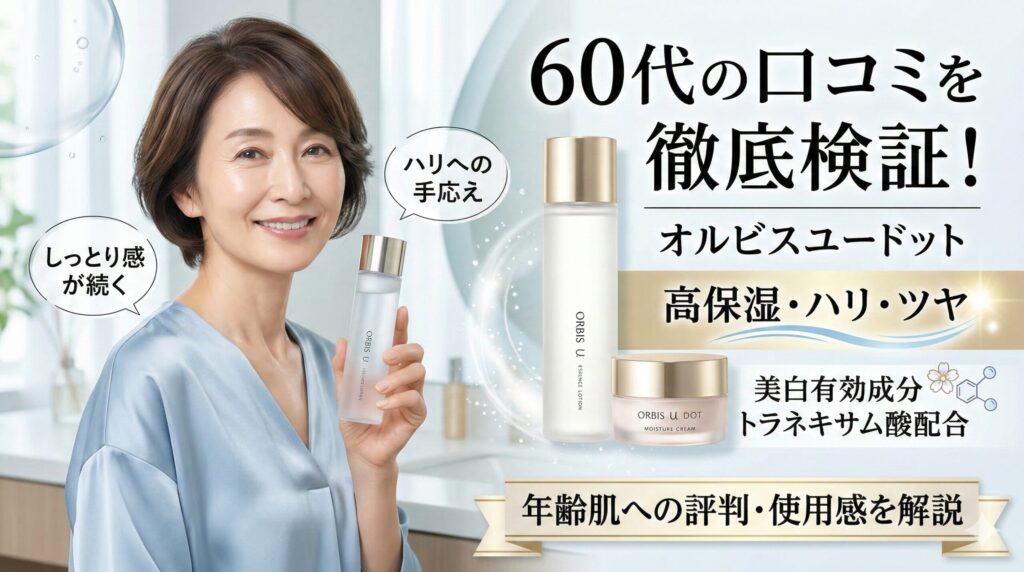 リード文 この記事では、オルビスユードットの口コミは60代でも良いのか、評判や使用感について解説します。結論から言うと、オルビスユードットは60代の乾燥しやすい肌にも使いやすく、しっとり感やハリ不足への手応えを感じやすいシリーズです。さらに、... -