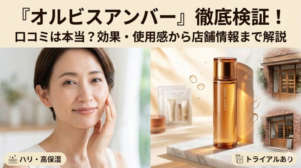 リード文 この記事では、[オルビスアンバー]の口コミが本当なのかを検証し、効果や使用感、さらに店舗での購入方法まで詳しく解説します。結論から言うと、オルビスアンバーは乾燥が気になる年齢肌にしっかりうるおいを与え、ハリ感をサポートしてくれる高... -
