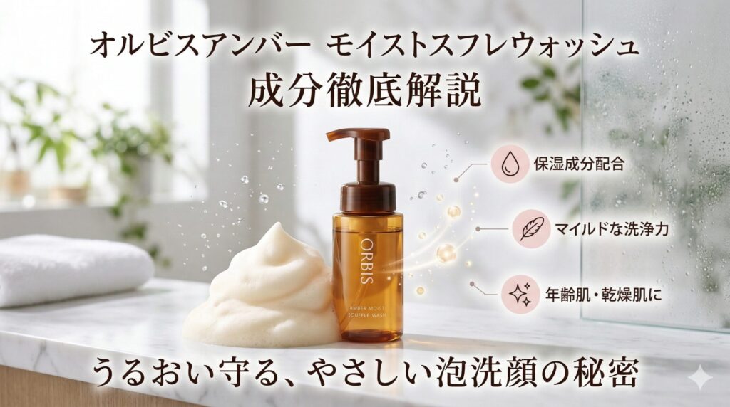 リード文 この記事では、オルビスアンバーモイストスフレウォッシュの成分について詳しく解説します。結論から言うと、うるおいを守りながらやさしく洗える設計が特徴で、乾燥しやすい年齢肌を意識した処方になっています。洗浄成分と保湿成分のバランスが... -