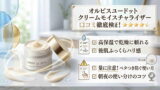 オルビスユードット 化粧水は、肌に水分を補給する役割があります。一方、クリームモイスチャライザーはスキンケアの最後に使い、うるおいを閉じ込める役割を持っています。化粧水で水分を与え、クリームで保湿をキープすることで、よりしっとりした肌を目指すことができます。