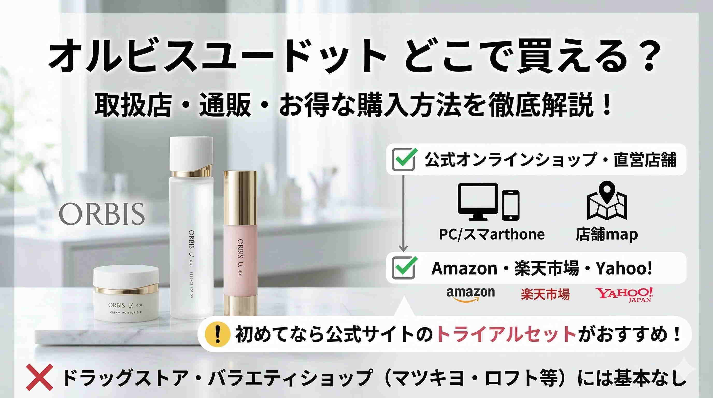 ※ドラッグストアでの取扱有無についてはオルビス公式で網羅的な明記がありません。本記事は公式の店舗検索・公式通販の掲載状況をもとにしています。必ず最新の各店舗情報をご確認ください。 (ORBISオンラインショップ)